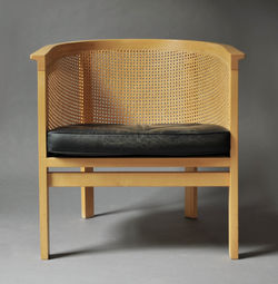 PAIR OF BEECH AND CANE ARMCHAIRS MODEL 161